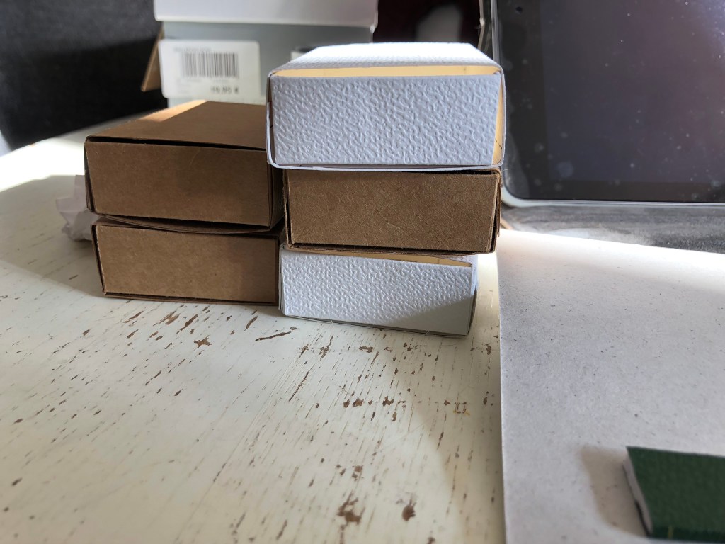 Inspirée par quelques artiste, j’ai tenté de détourner une boîte d’allumettes. J’en avais encore en réserve de l’époque où je possédais une cuisinière au gaz en bouteille (campagne oblige) et où la maison était encore très fréquentée, amis, famille et enfants…