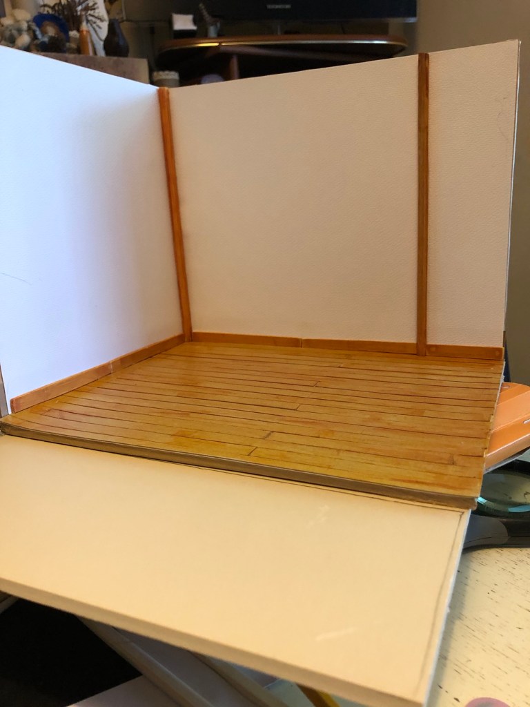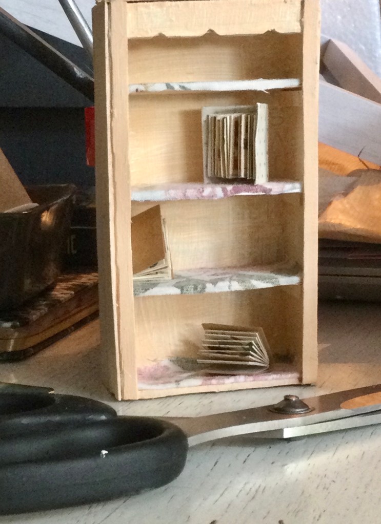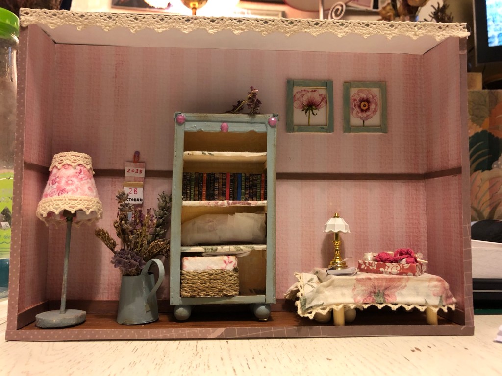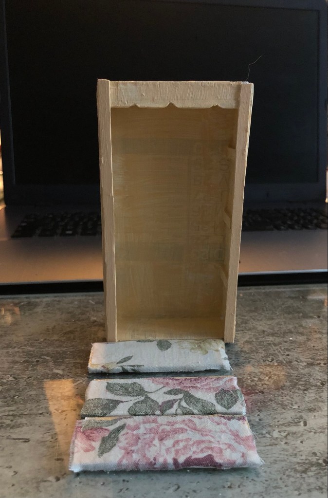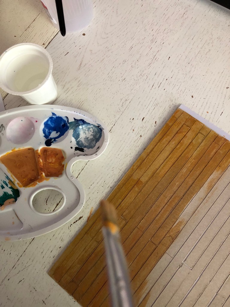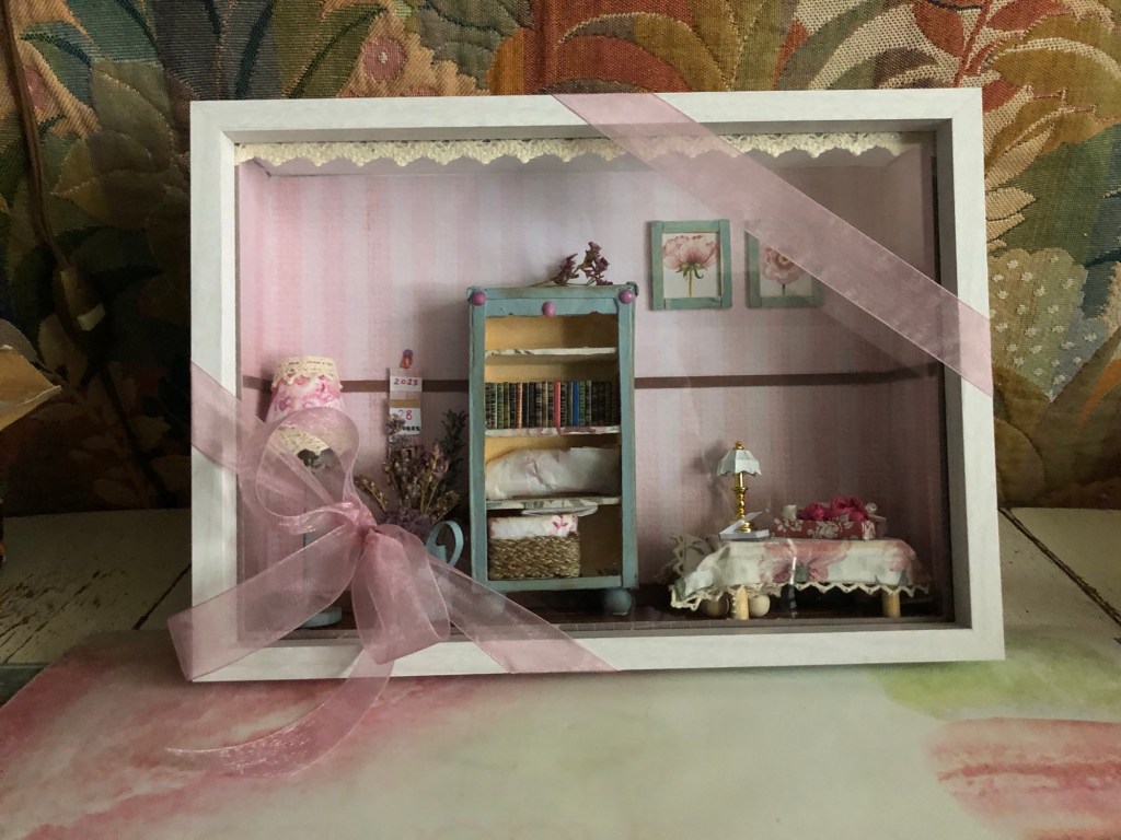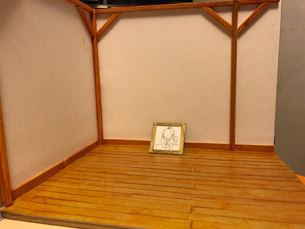 Ma première expérience a été réalisée dans un support existant : un cadre en bois. Je lui ai ajouté un boitage en carton à l’arrière pour donner de la profondeur à ma mise en scène.