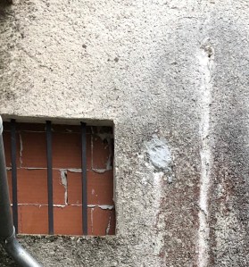 Sur la terrasse, une pièce a été construite plus récemment. L’accès à une double cave se trouve dans cette pièce qui obstrue toute cette partie de l’ancienne façade. La première cave est aveugle hormis la porte et se trouve sous ce qui est dénommé, le grenier. La deuxième cave, à droite se trouve sous l’une des pièces de la maison. Elle côtoie la citerne, et une vieille porte en bois gris dont les lattes disjointes laisse passer le vent, l’eau des pluies et sûrement un tas de petits animaux donne accès à l’arrière.