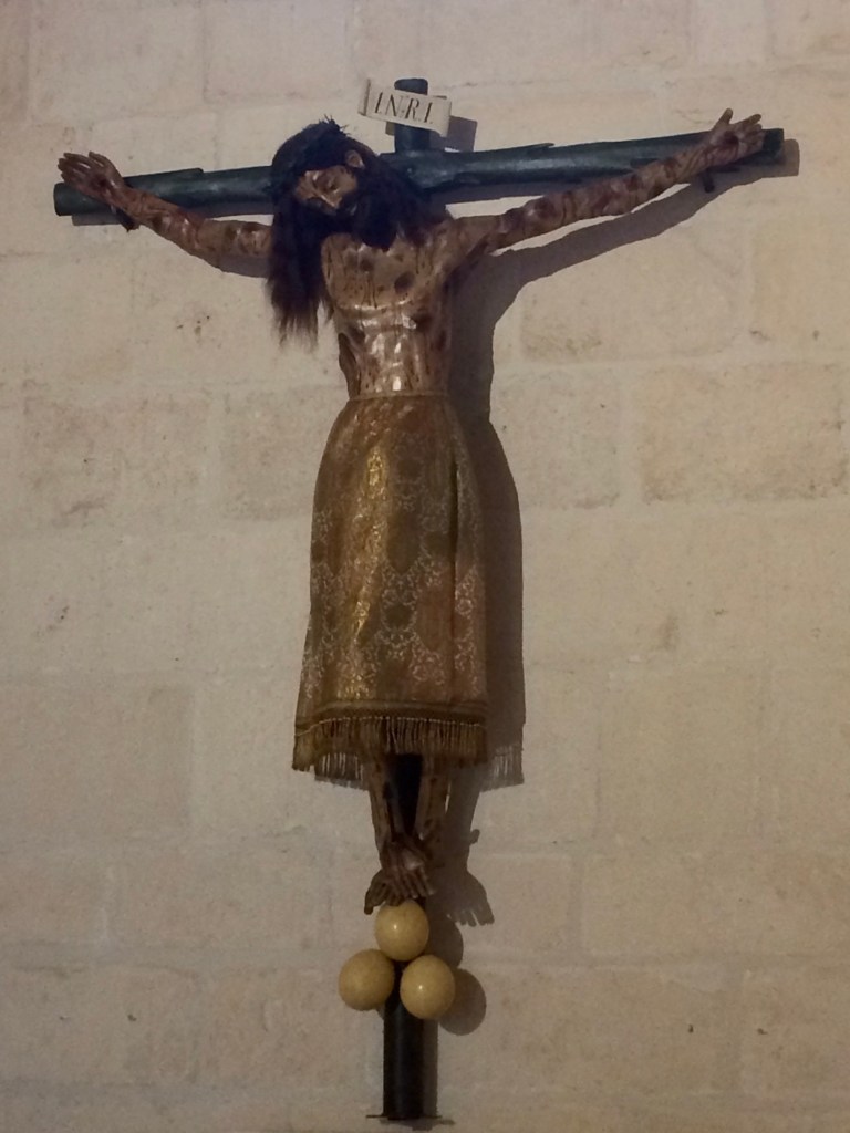 Impressionnant en effet ! J’aime cet art populaire qui trouve toujours un moyen de s’exprimer. Nous avons oublié ce qu’il voulait nous dire, notamment avec les supports des pieds du Christ, mais tant pis, nous apprécions tout de même.