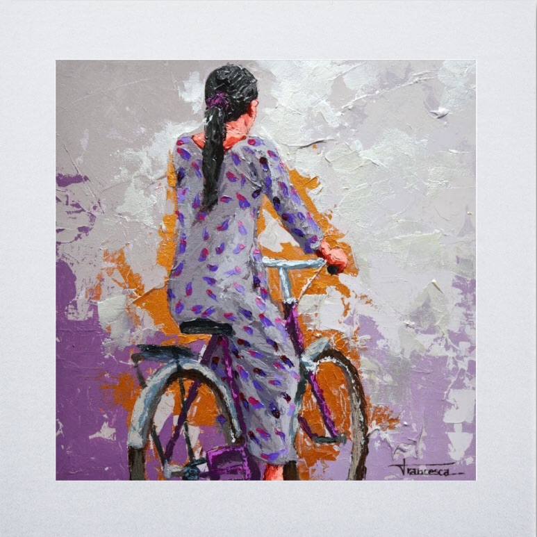 Séduite par le naturel de la posture d’une femme à vélo, sur un fond, un mur, que je qualifie d’écorché, et découvert par hasard sur la toile, j’ai eu beaucoup de mal à trouver qui était l’auteur de cette œuvre. Ci-dessous, j’ai trouvé une galerie virtuelle (clic ici aussi).