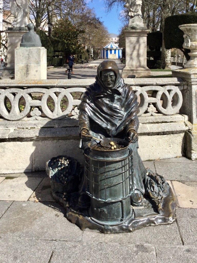 La statue de la vendeuse de châtaignes, située sur le Paseo del Espolón, à côté de l’Arco de Santa María, est, après celle du Cid, l’une des statues les plus photographiées de la ville. Il est en bronze et a été réalisé en 2007 par le sculpteur de Burgos Bruno Cuevas.