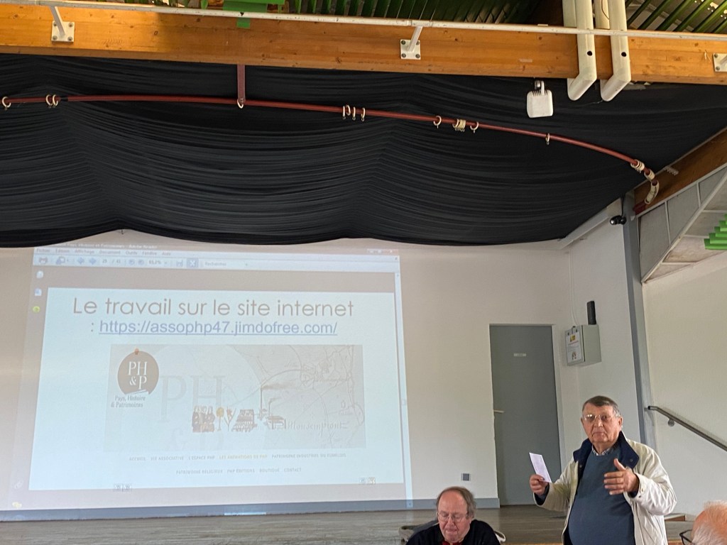 Se sont succédés pour rendre compte des activités en 2024, le Président, Pierre Simon, aussi conférencier, spécialiste du Moyen-Age, Maria Garrouste, Raconteuse de pays, animatrice de Séjour en Territoire roman avec Mireille Colas, Carole Westelynck, animatrice des Journées du Patrimoine Industriel, Alain Sarriau, secrétaire et membre du Comité Editorial, Daniel Vilain, animateur du site de l’association (https://assophp47.jimdofree.com/), Marie-Noëlle Rigal, animatrice du Point d’accueil à Penne-d’Agenais ( Espace Php Penne d’Agenais ) et Claire Harel, trésorière.