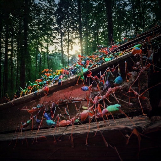 A l’enterrement d’une feuille morte, deux escargots s’en vont… Le violon de carton pleure la tristesse d’une sonate pour un pendu. Et les fourmis absorbent l’âme des poèmes qui s’égrènent, et la mélopée du violon triste. Elles changent, les unes après les autres, au fur et à mesure que les mots s’échappent de Processus en fin de vie… Les mots s’effacent de la blanche feuille de papier, les mots, les vers, les strophes, les poésies entières, virevoltent, choisissant telle ou telle fourmi, qui, heureuse, n’est plus noire de rien, mais couleur de toute la poésie du monde !