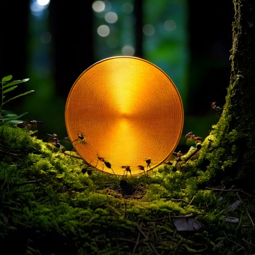 Extasiées, toutes les fourmis du village, adoratrice du disque d’or, regardent, dévorent des yeux.