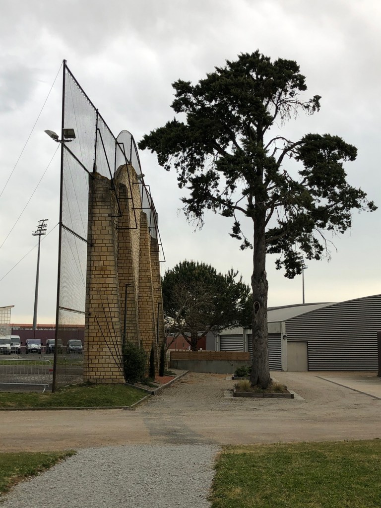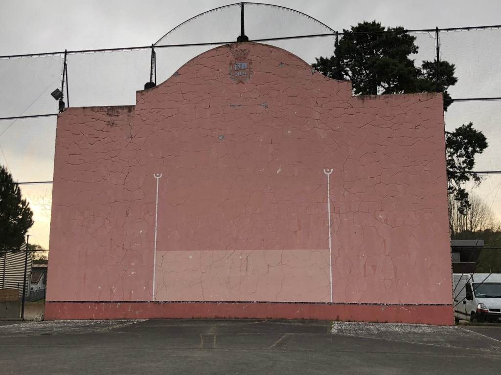 Il fait bien triste mine ce fronton… il lui faudrait une cure de rajeunissement. Se lamente-t-il sur un passé glorieux où ceux originaires (ou non) du Pays basque venaient se divertir ? Des compétitions ont-elles eu lieu ? Voilà des recherches à faire…